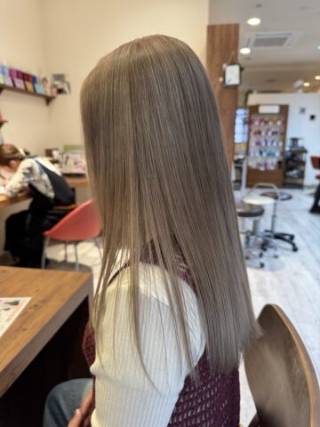 ホワイトベージュ 2025-05-14 こんにちは! 今回は使ってみたいカラー剤の試供品をディーラーさんから頂いたので スタッフのめいちゃんに使ってみました♪ ホワイトカラーにしたかったのですがばちばちにブリーチするのが 厳しかったので残留も馴染む程度にカラーしました。 ホワイトカラーはブリーチ3回は必須です~ 白髪が多くてグレーカラーにしたい方に使えるかも、、? 河端でした! < prev | BLOG一覧 | next > LASTED ENTRY 先日、営業後にスタッフみんなで食事会でした🥂 こんにちは こんにちは️ Periからお知らせです コラーゲントリートメント🫧 まだまだ暑いので炭酸スパで オススメ️ CATEGORY リクルート (43) サロンニュース (257) スタイル (49) プライベート (13) トピックス (278) カラー (8) シャンプー・トリートメント (10) パーマ (2) イベント (12)