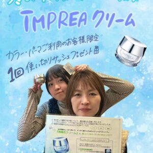 冬の乾燥&エイジング対策 インプレアクリーム1回分プレゼント ※カラー、パーマご利用のお客様・・・ ・・・
