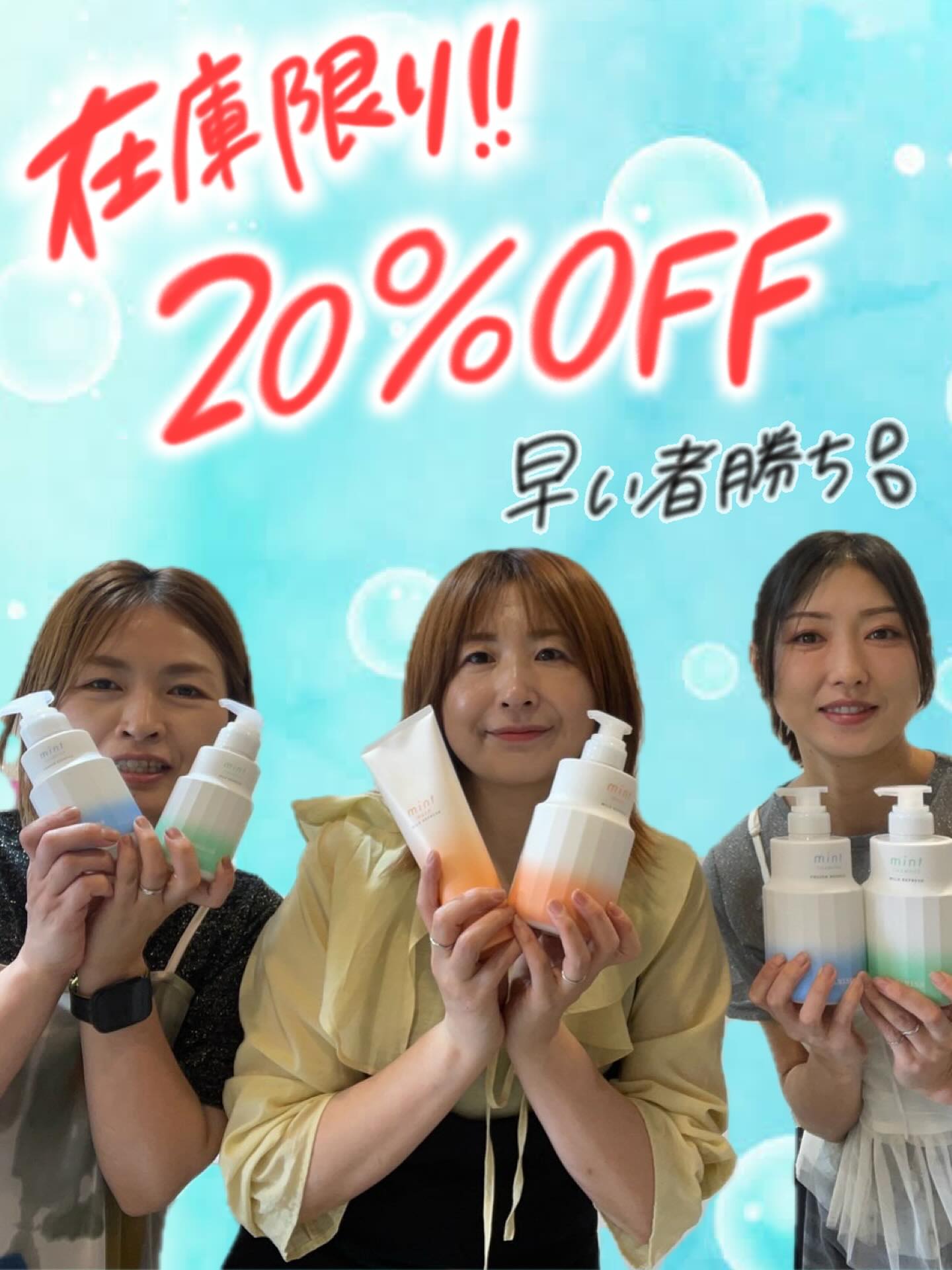 残りわずかですがミントシャンプー&トリートメントが20%OFFで買えちゃいます🏻