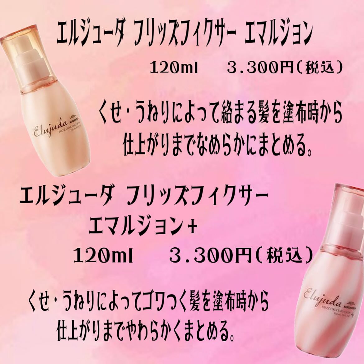 ️エルジューダシリーズ️ FRIZZ FIXERフリッズフィクサー くせ・うねり毛に悩むすべての方へ 毎日のドライでくせ・うねりのある髪を扱いやすく、まとまり、続く 120ml 3.300円(税込) 12月限定 20%off️ 2.640円(税込)でお買い求め頂けます*゜ Peri ピアリ岡本 女性限定サロン エルジューダ取扱店