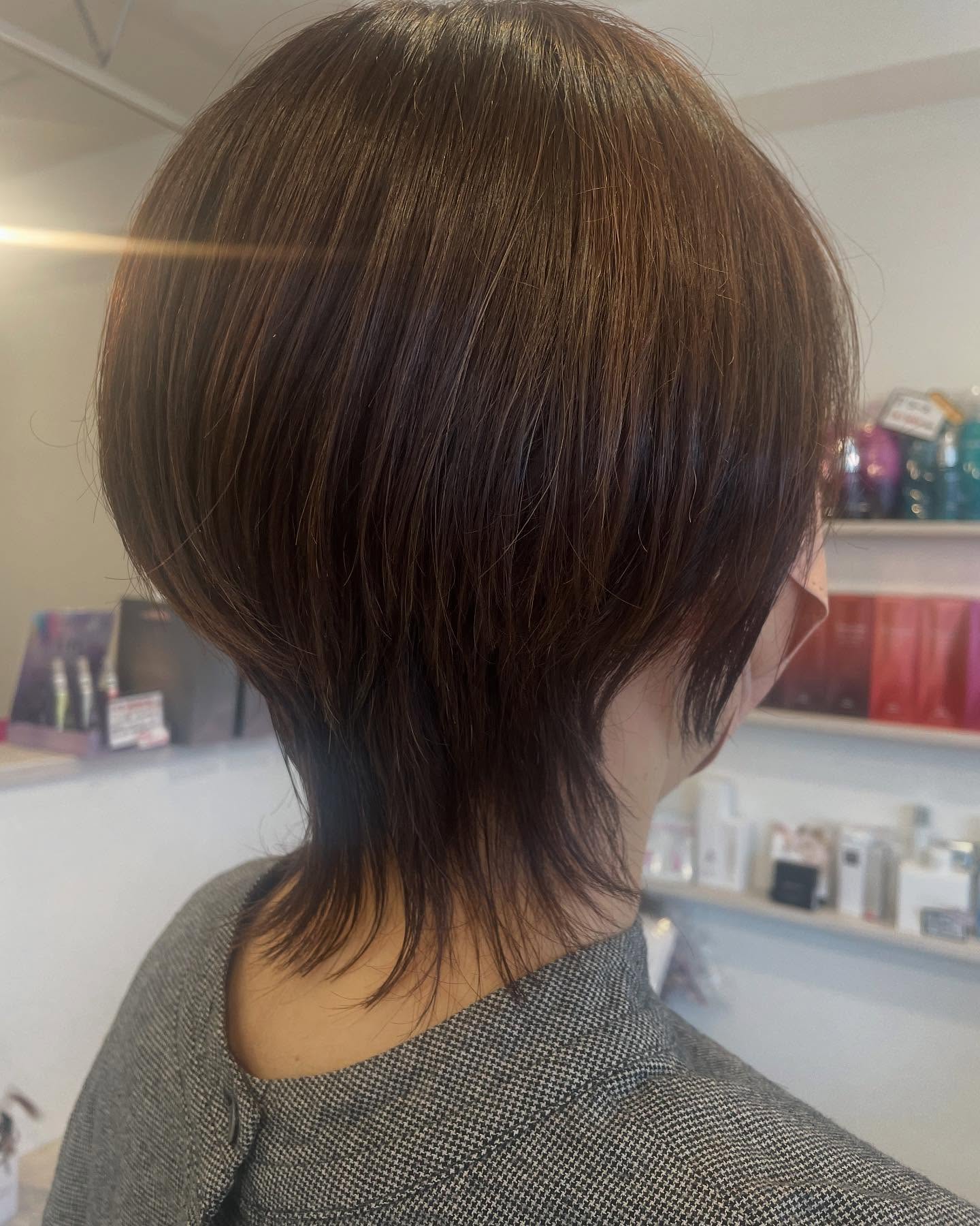 マッシュウルフ   ハンドブローでオイル付けるだけでまとまりのあるスタイルに!   stylist加藤 ショート 大人女子#periokamoto #ピアリ#岡本美容室#女性限定   #サロン#白髪ぼかし ウルフヘア #ナチュラルハイライト #Aujua IMPREA milbon