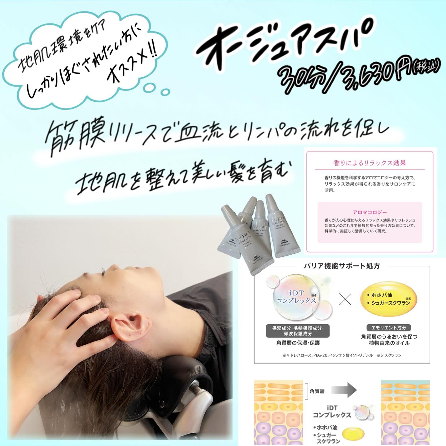 ミルボンオージュア・インプレア取扱、頭浸欲スパ導入 最新の技術・メニュー・薬剤はどんどん取り入れています