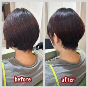 《ケアカラーカット》 補修剤をたっぷり入れた アディクシー秋色ボルドールビーで 秋色カラーにカラーチ・・・ ・・・