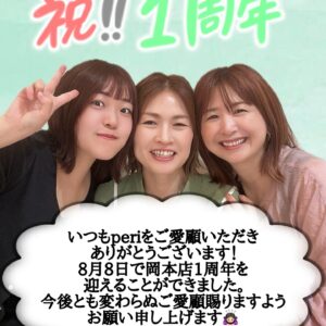 ️1周年️ いつもperiをご愛顧いただきありがとうございます! 8月8日で岡本店1周年を迎えること・・・ ・・・
