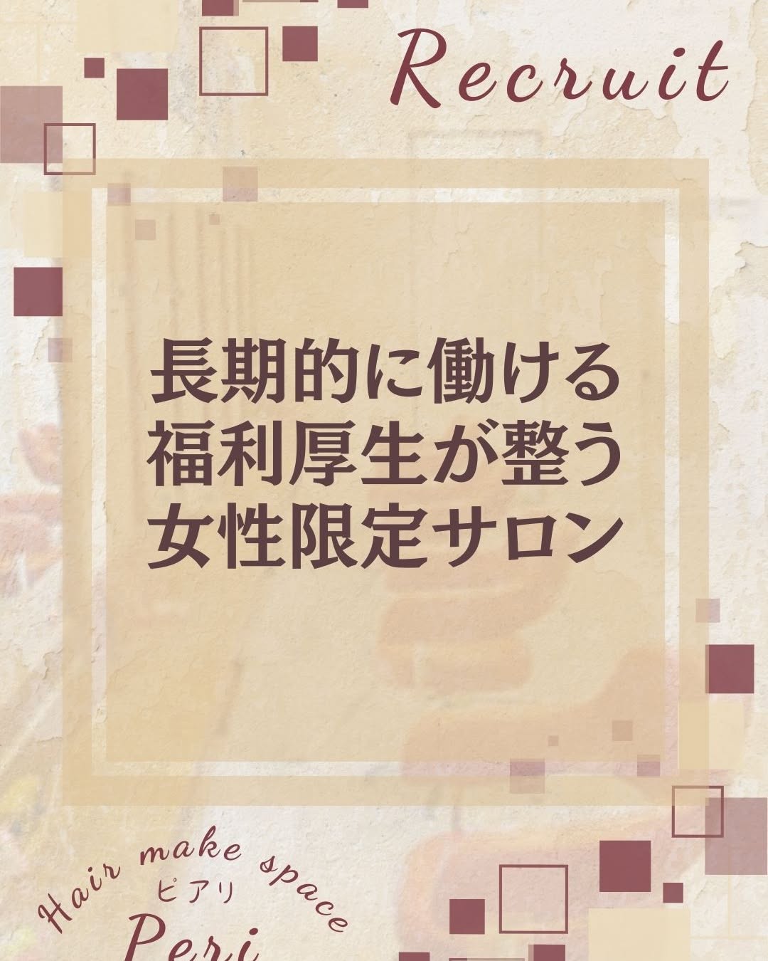 美容室ピアリでは一緒に楽しくお店を盛り上げてくれる美容師さんを募集中です