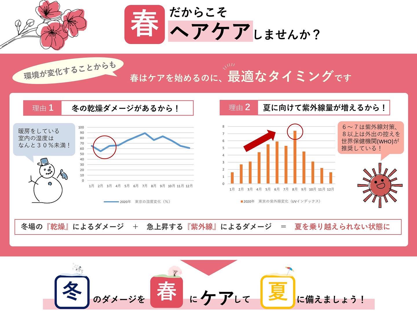春は意外にも環境の変化などにより、ヘアケアが重要になる季節です