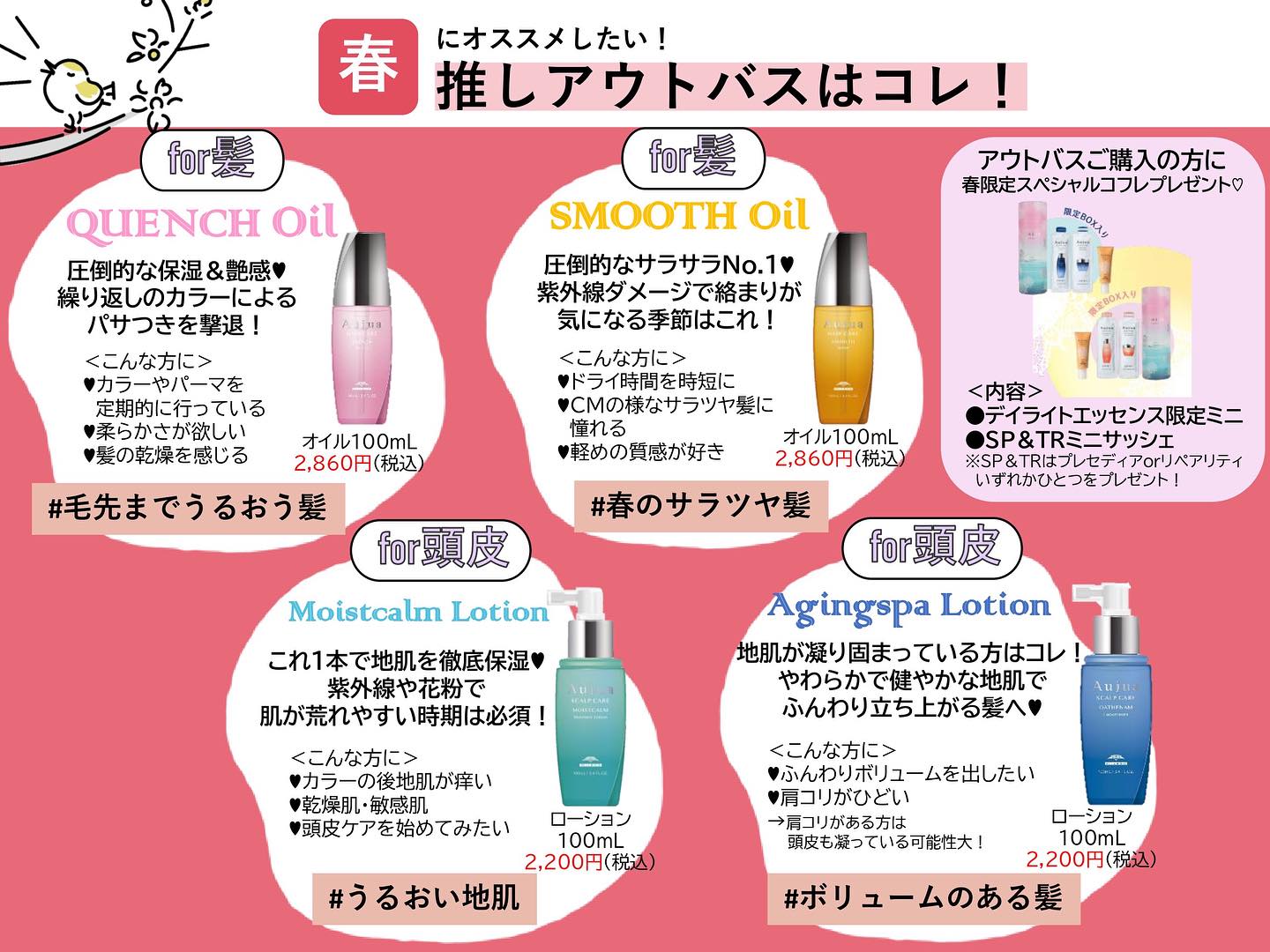 ミルボンオージュア・インプレア取扱、頭浸欲スパ導入
