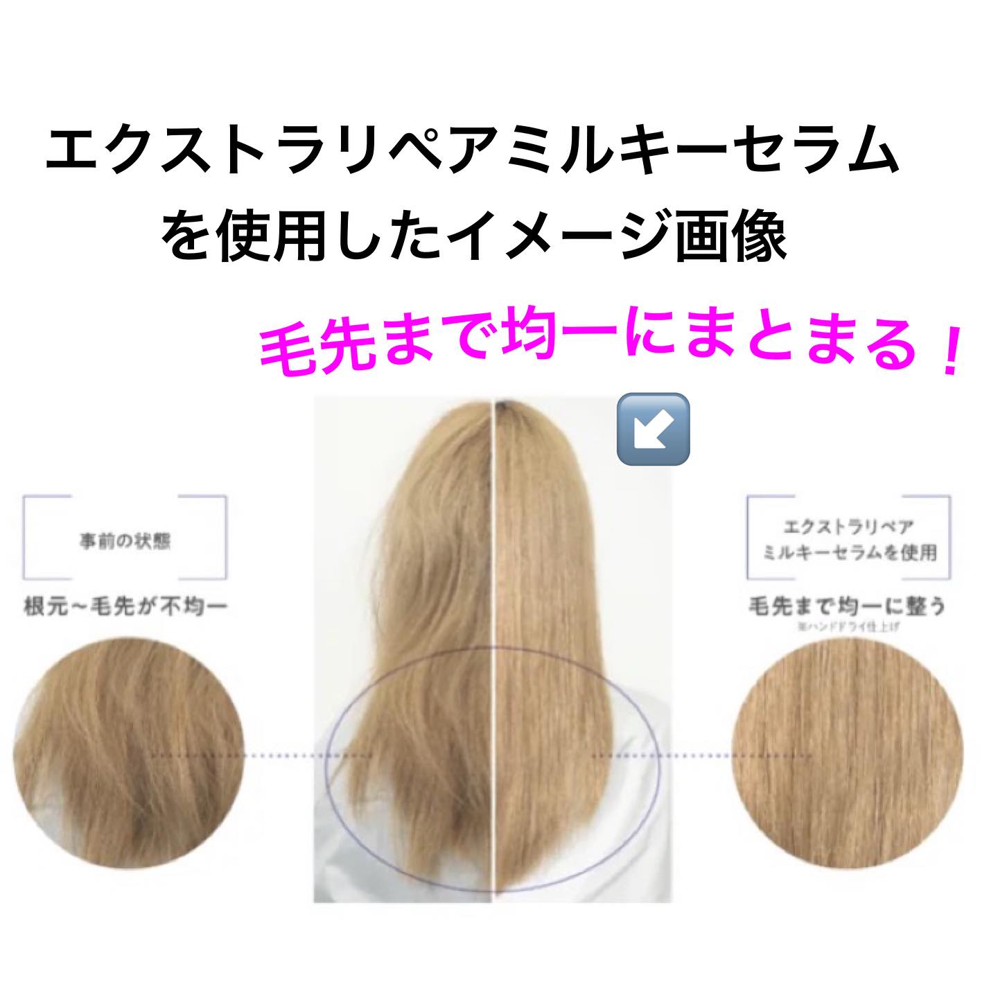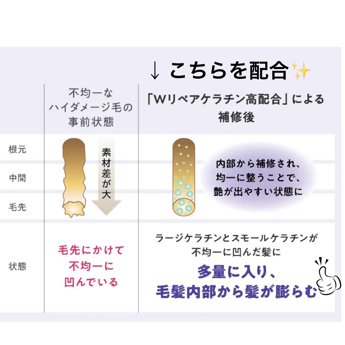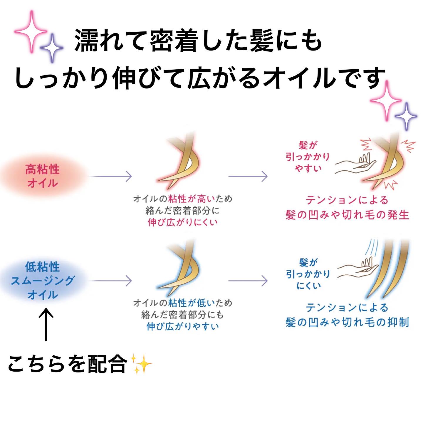 ダメージが大きい毛先には、少量重ねて付けると、よりまとまりやすくなります。
